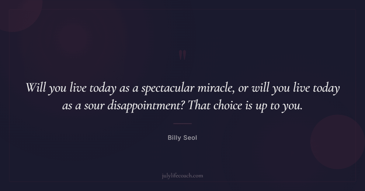 Will you live today as a spectacular miracle, or will you live today as a sour disappointment? That choice is up to you.
